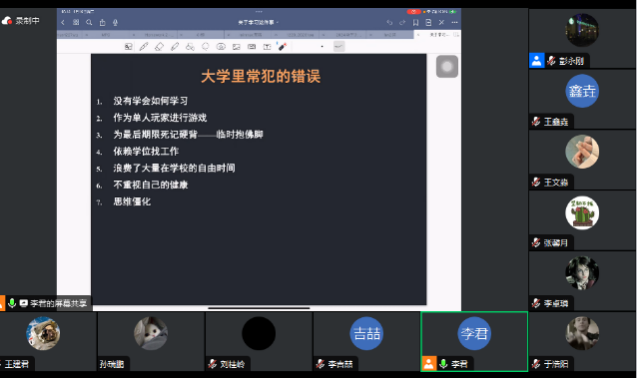 最后,李君老师给出了“调整心态”的方式方法,并就尽快适应大学学习、掌握正确学习方法、如何自律等问题进行了答疑。