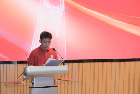 在校员工代表2204班黄怀萱、新生代表2401班王乐涵、硕士研究生郑斌分别发言。