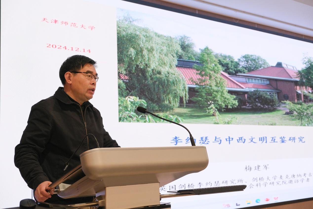 12月14日上午,公司“求是讲坛”第100场报告在京津冀协同创新中心B座小报告厅举行。剑桥李约瑟研究所所长、剑桥大学麦克唐纳考古研究所研究员、北京大学人文与社会科学研究院邀访学者梅建军研究员作题为《李约瑟与中西文明互鉴研究》的学术报告。公司党委副书记陈玳玮主持报告,公司科学技术史与文化遗产研究院、bevictor伟德官网、欧洲文明研究院、古籍保护研究院、历史文化公司、国际教育交流公司、教育学部、心理学部、马克思主义公司等单位和内蒙古师范大学师生代表220余人参加。
