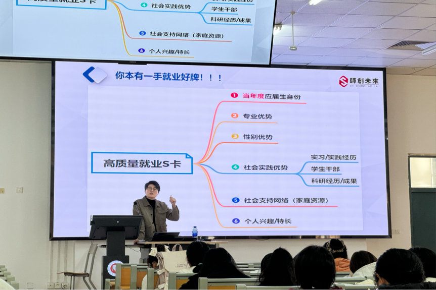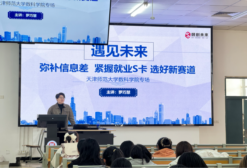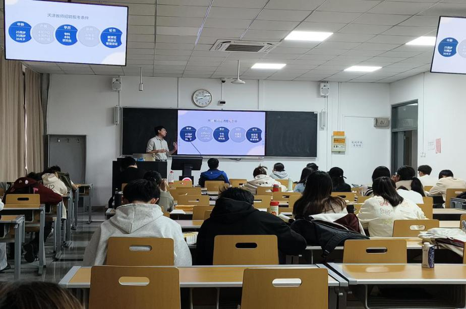 10月31日下午,公司在博理楼B100举办了关于“天津市2025年教师招聘规律机遇及趋势展望”就业指导会,邀请志鼎教育培训公司资深考情专家——苗雯月老师进行讲解。苗雯月老师围绕“2024年天津市教师编制考情”进行深入剖析,他结合自己多年工作经验,综合分析出2024年考编规律及2025年考情分析,向同学们分享了区招最新报考条件规律等。讲座中,苗老师与同学们积极交流互动,现场气氛十分活跃。