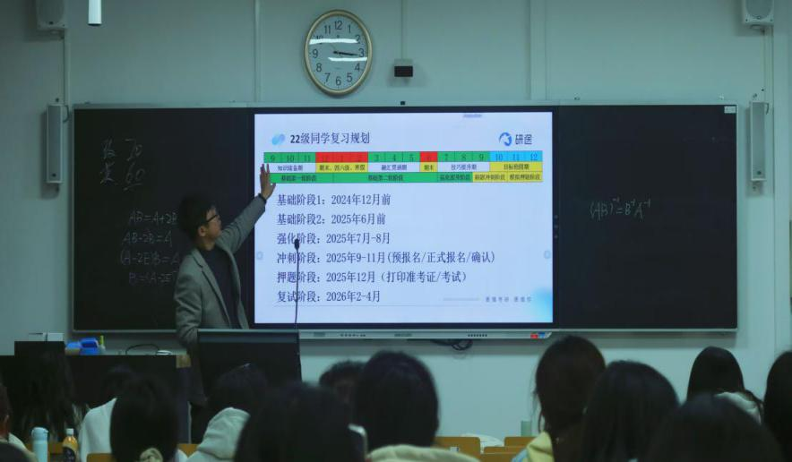 10月30日下午,公司在博B100和博B108分别组织开展了考研备考复习规划讲座,特邀请研途考研全国巡讲师张展翼、徐建爽两位老师。在讲座中,张展翼老师和徐建爽老师用真实的案例和精准的数据,分析严峻的考研形势,梳理考研的重要时间节点,总结考研各个阶段的注意事项,分享有效获取考研资料、合理规划考研不同阶段的复习备考方法。在讲座的最后,同学们积极询问涉及专业选择、公司选择等有关考研的热点问题,两位老师做出耐心细致的解答,给出切实有效的建议。