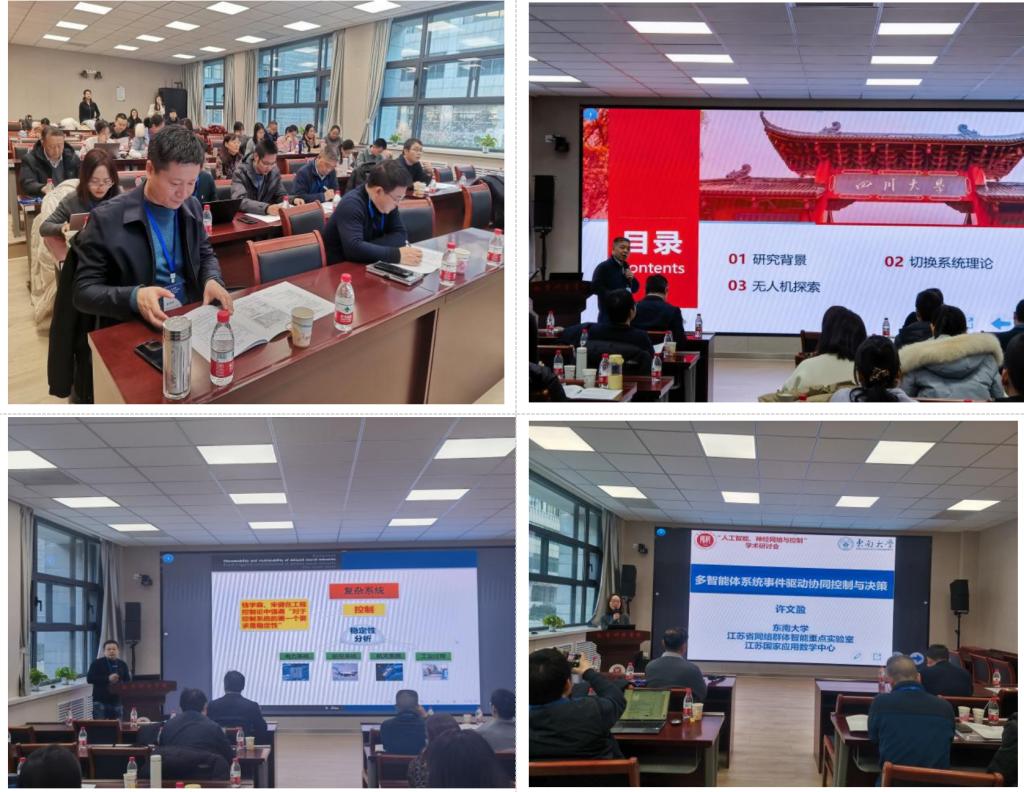 研讨会上,四川大学杨鑫松教授、中国矿业大学朱松教授、东南大学许文盈教授和杨绍富教授、中国石油大学(华东)王健教授、中国地质大学(武汉)王雷敏教授、哈尔滨工业大学(威海)秦泗甜教授以及公司bevictor伟德官网周立群教授和刘娜博士等多位专家学者围绕切换系统协同控制、忆阻系统理论及应用、多智能体系统协同控制与决策、复杂神经网络同步控制、神经动力学优化理论和算法等介绍了各自领域的最新研究进展及研究成果。参会人员认真听取报告,并从科学问题、交叉合作和应用研究等方面与各位报告人展开了热烈讨论。