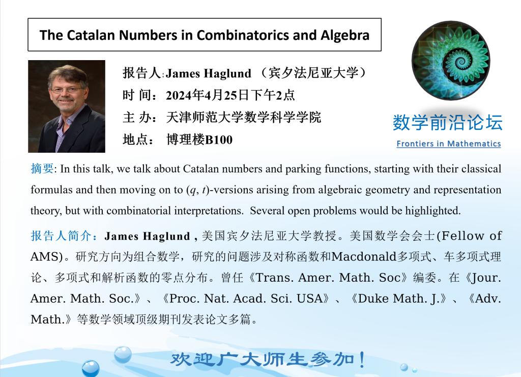 【预告】学术报告(2024-4)4月25日—The Catalan Numbers in Combinatorics and Algebra