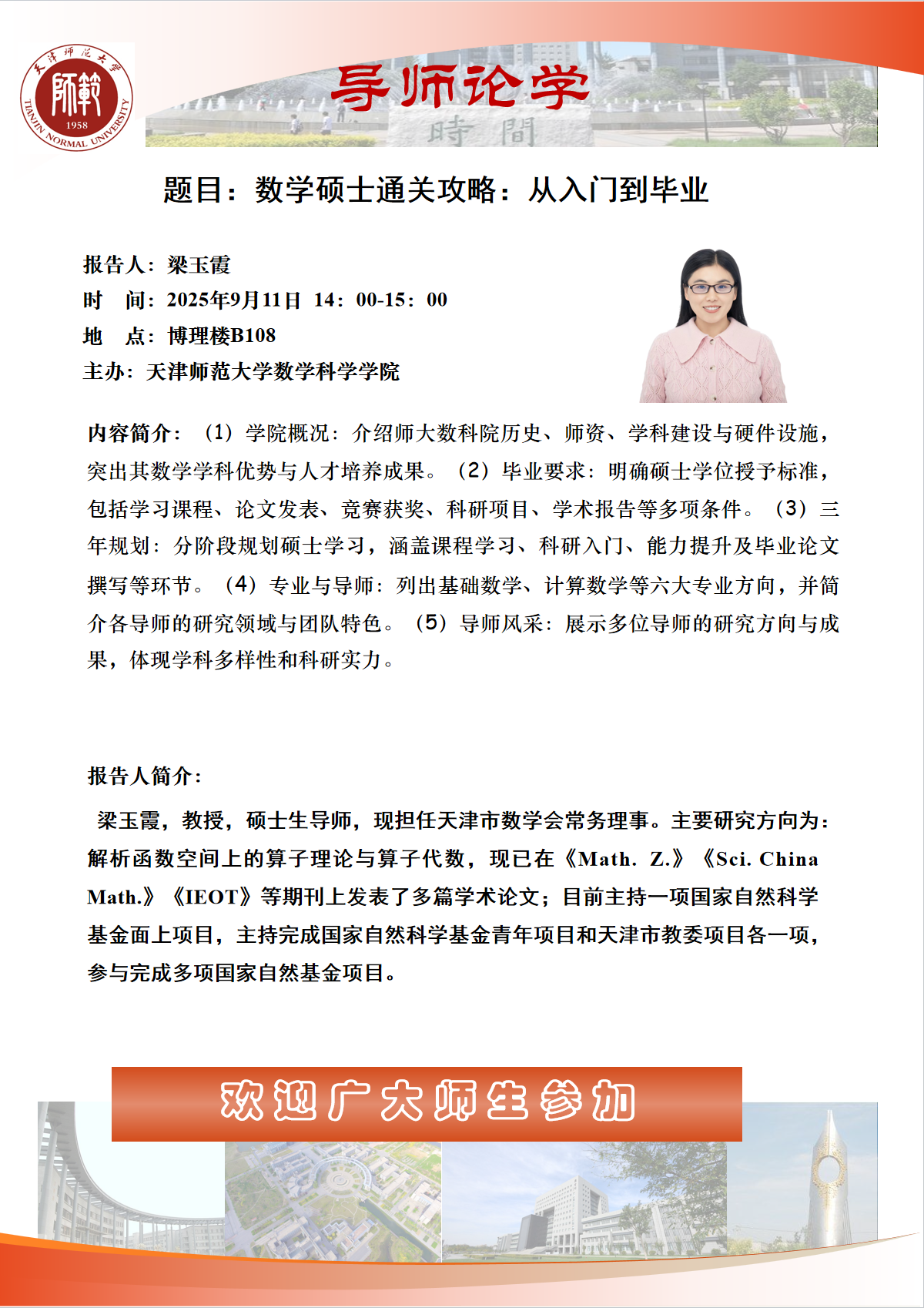 【预告】学术报告(2025-35)9月11日-数学硕士通关攻略:从入门到毕业