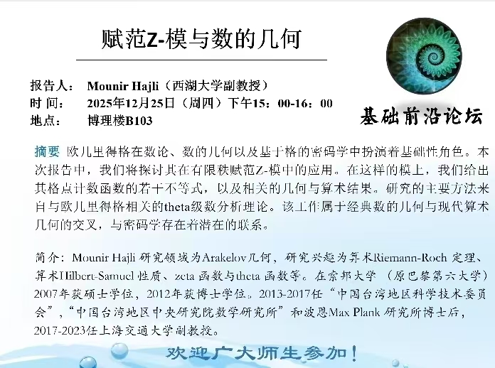 【预告】学术报告(2025-57)12月25日--赋范Z-模与数的几何
