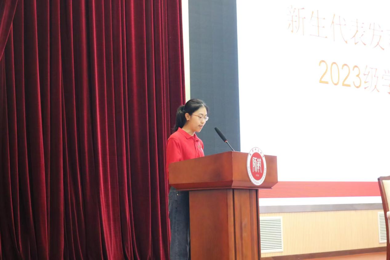 王书记向新生提出三点希望:一是紧紧抓住时代赋予的使命,紧跟时代浪潮,做对社会有用的人才。二是始终牢记幸福是奋斗出来的。三是及时转换角色,适应老员工活,并对大学四年生涯作出规划。希望同学们坚定信念,在实践中不断砥砺前行,在奋进中遇见更好的自己,勇于承担推进新时代中国特色社会主义发展的责任,把自己的发展融入中华民族伟大复兴和构建命运人类共同体之中去! 公司副经理高红成教授,教师代表、校级教学名师张艳艳老师,2021级数学与应用数学(师范)专业员工代表曹佳奕,2023级数学与应用数学(师范)专业新生代表高源分别发言。
