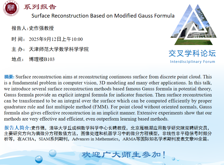 【预告】学术报告(2025-15)9月12日-Surface Reconstruction Based on Modified Gauss Formula
