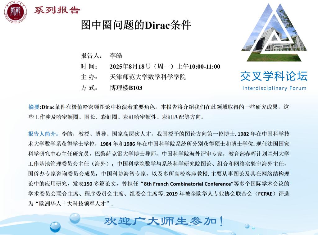 【预告】学术报告(2025-14)8月18日--图中圈问题的Dirac条件