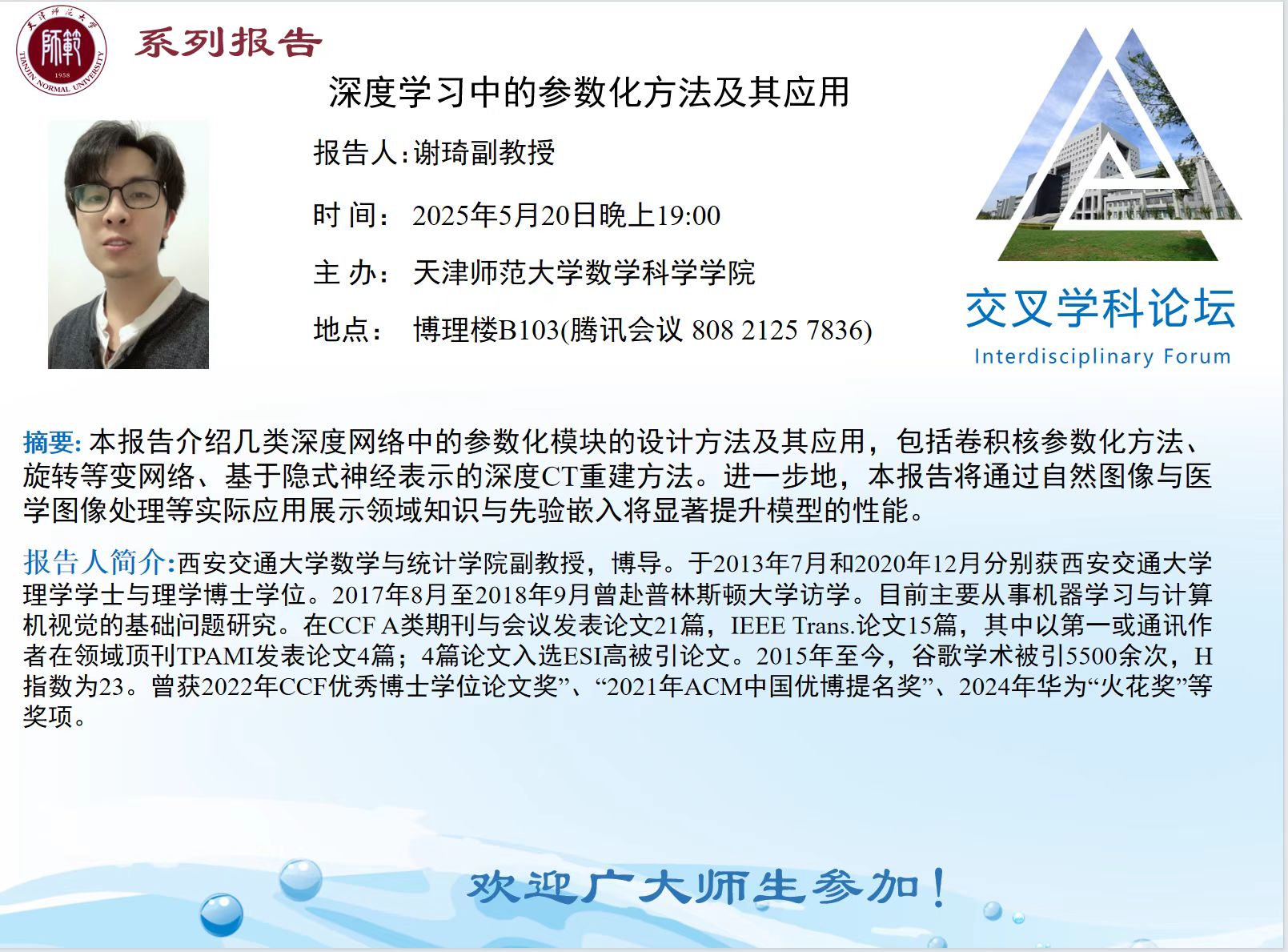 【预告】学术报告(2025-5)5月20日——深度学习中的参数化方法及其应用
