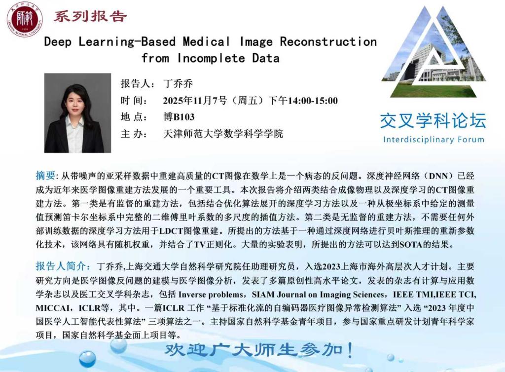 【预告】学术报告(2025-20)11月7日-Deep Learning-Based Medical Image Reconstructionfrom Incomplete Data