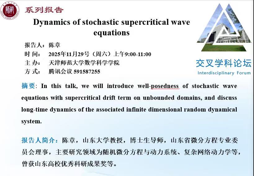 【预告】学术报告(2025-23)11月29日--Dynamics of stochastic supercritical waveequations
