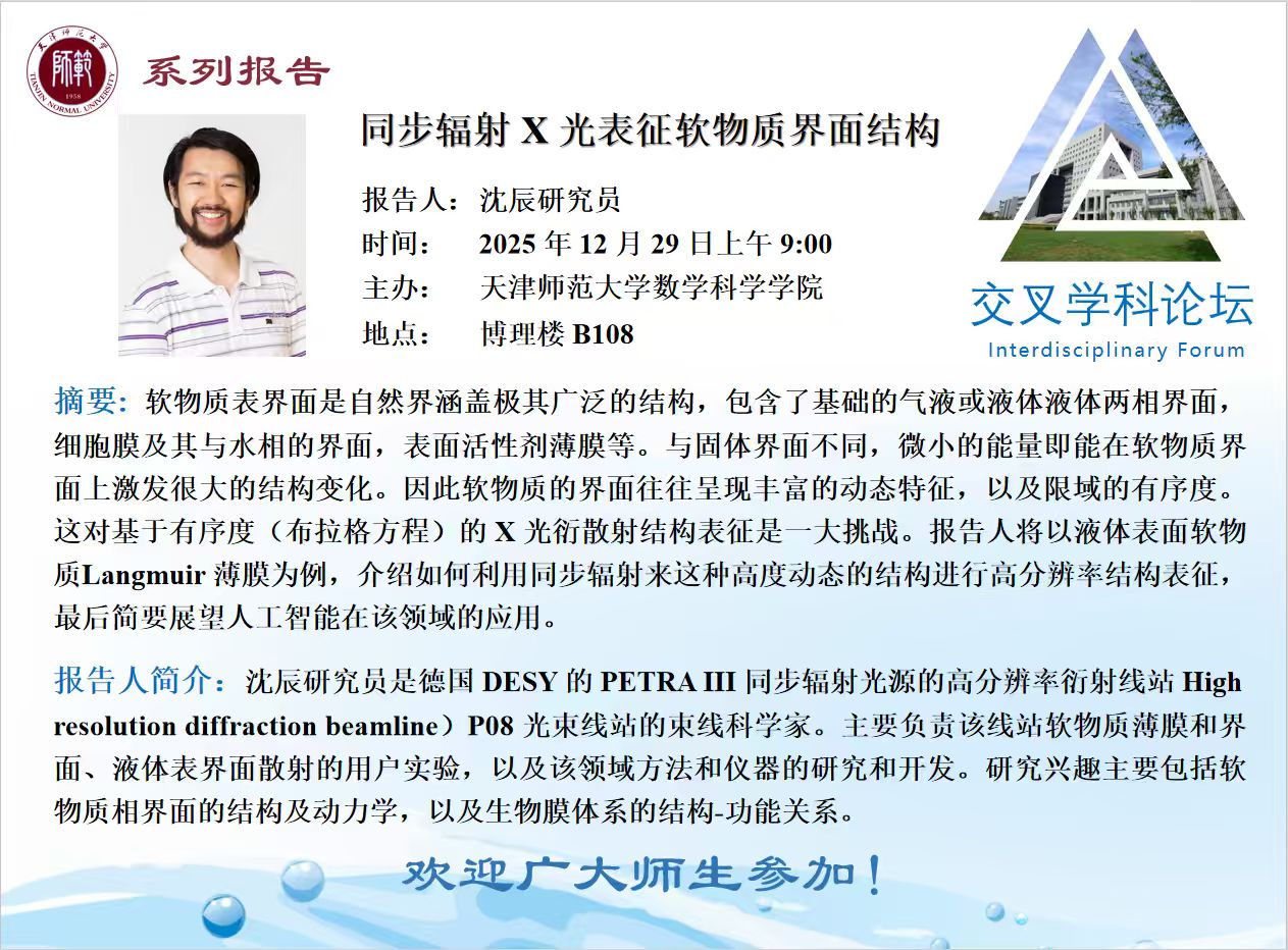 【预告】学术报告(2025-28)12月29日-同步辐射X光表征软物质界面结构